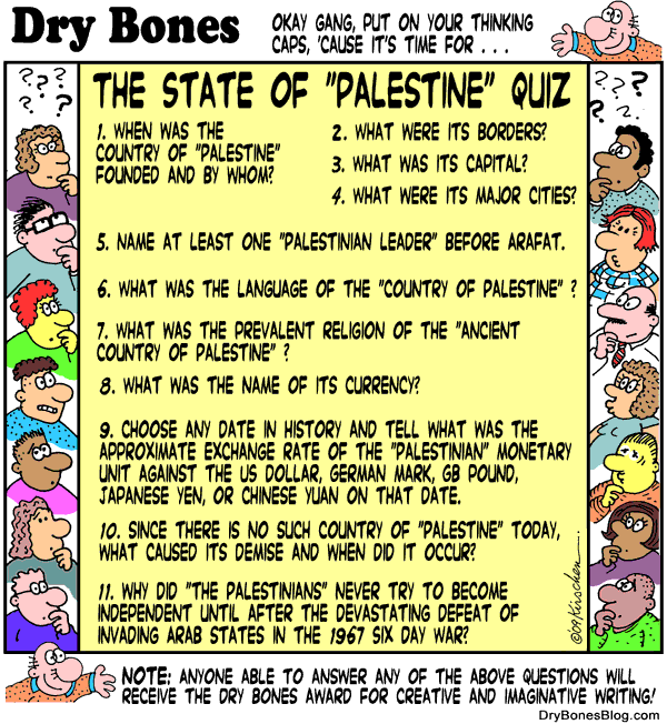 "The truly "ignorant," however, are those who have bought the "Palestinian homeland" propaganda. Where was all this talk about a homeland for the Palestinians in 1948, when the Arab armies invaded Israel? Their aim was not to create a Palestinian state, but rather to carve up the rest of British Mandatory Palestine ... "Abdullah [ruler of Transjordan] was to swallow up the central hill regions of Palestine . . . The Egyptians would get the Negev. The Galilee would go to Syria, except that the coastal part as far as Acre would be added to the Lebanon." Until 1967, the so-called "West Bank" was part of Jordan, but none of the Arab nations agitated for the creation of a Palestinian state. The "Palestinian homeland" became a tactical weapon after violence failed to achieve the real aim, the destruction of Israel."