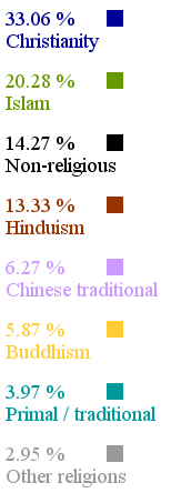 Worldwide percentage of Adherents by Religion.