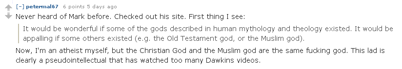 an "atheist" called "petermal67"