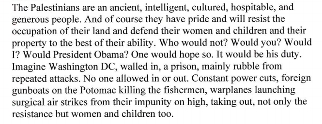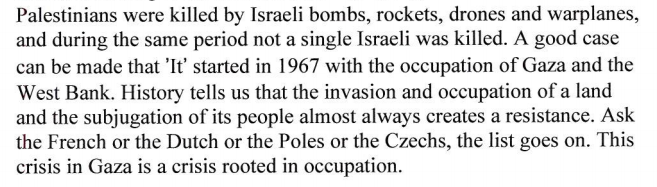 And you can't blame them for that. In fact, they have a moral obligation to resist the occupation by a foreign power of their land."