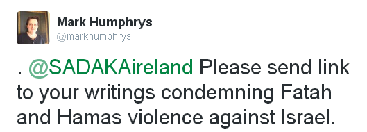 If Sadaka has ever condemned Fatah and Hamas violence, I would be interested.