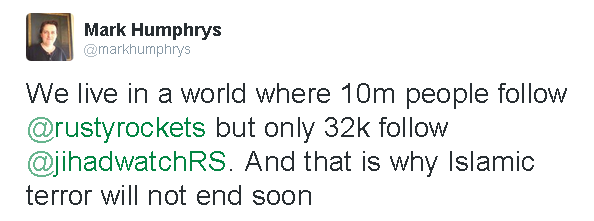 "all over our country, all over our planet there are huge numbers of people who feel alienated and sometimes victimised by the privileged and the powerful, whether that's rich people, powerful corporations or occupying nations. They feel that their interests are not being represented and, in many cases, know that their friends and families are being murdered by foreign soldiers. I suppose people like that may look to their indigenous theology for validation and to sanctify their, to some degree understandable, feelings of rage."