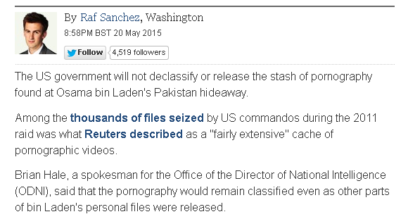 May 2015: Bin Laden porn collection to stay classified for now.