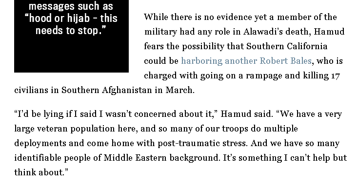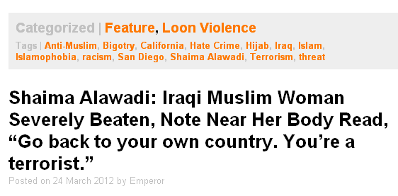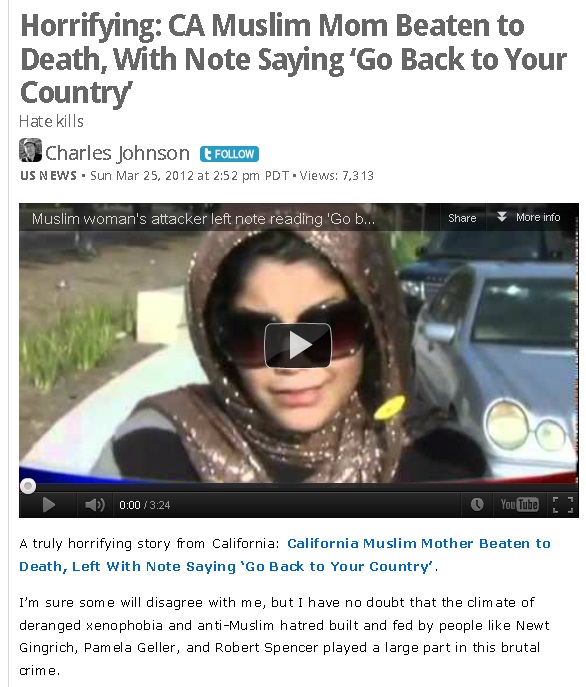 in California in March 2012 was at first blamed on "anti-Muslim hatred".