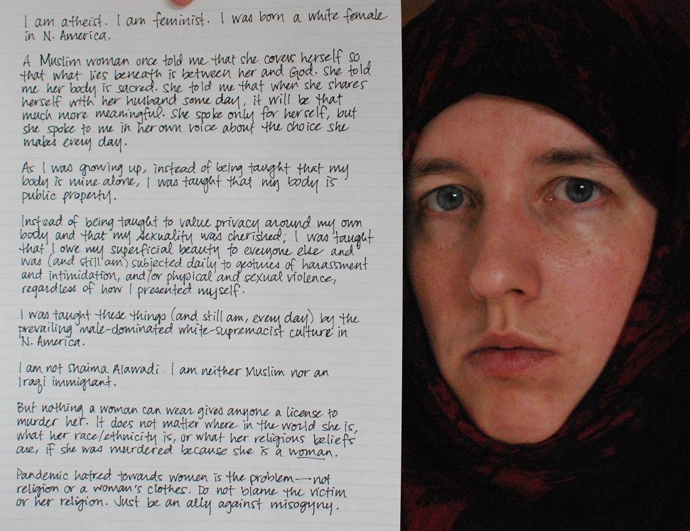 As for wearing hijabs to support a victim of Islamic honour killing, it seems .. tasteless.