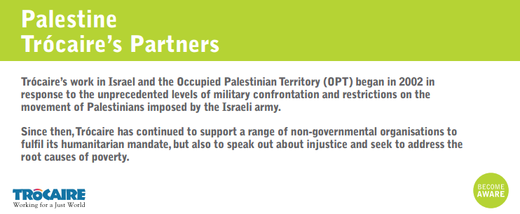 Even when explaining why Trocaire idiotically got involved in Israel in 2002,