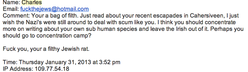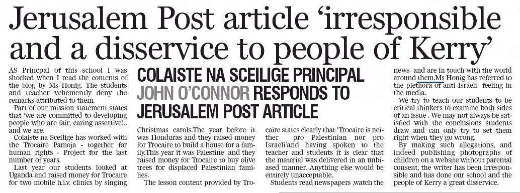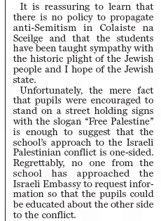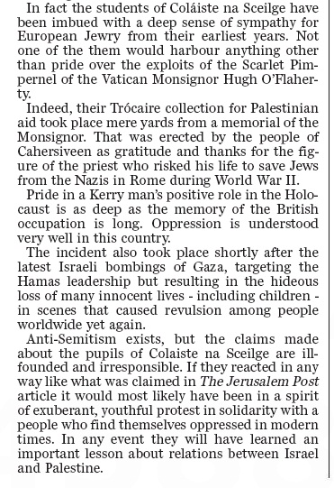 The Israeli embassy wrote a reply in The Kerryman, 6 Feb 2013.