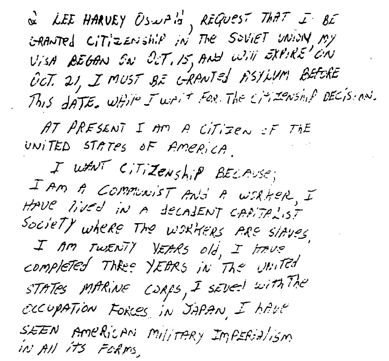 "I, Lee Harvey Oswald, request that I be granted citizenship in the Soviet Union. ...