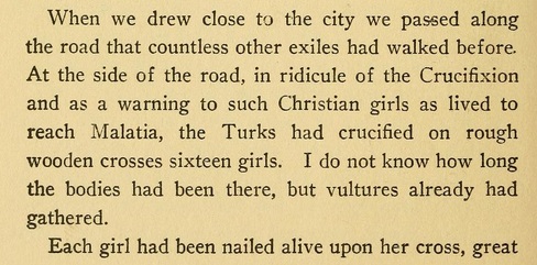 showing the crucifixion of Christian girls by the Turks in 1915.
