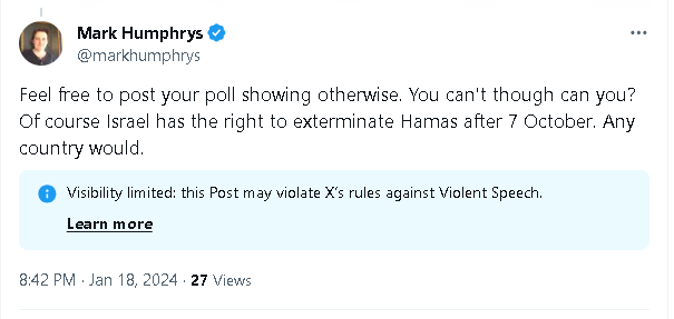 "If you want security, peace and a better life for Gazans, then you need to destroy Hamas."