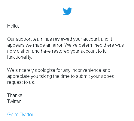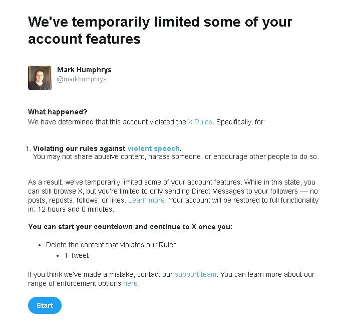 Twitter says I will have a 12 hour suspension.