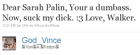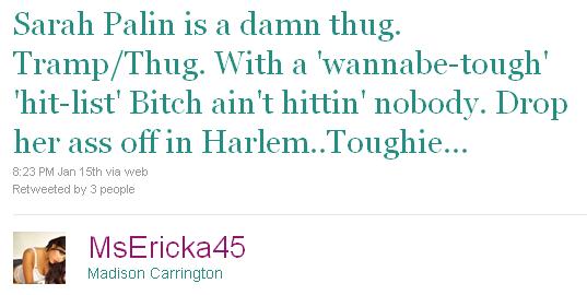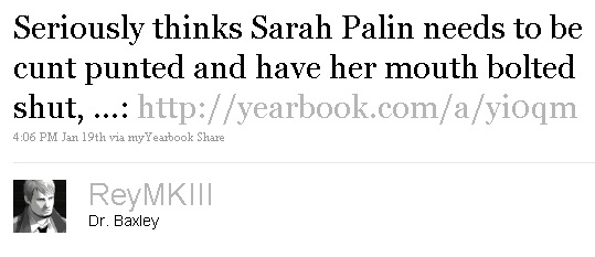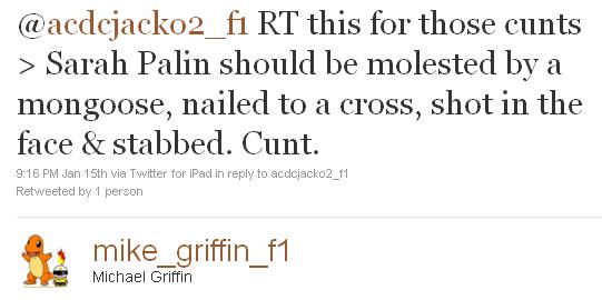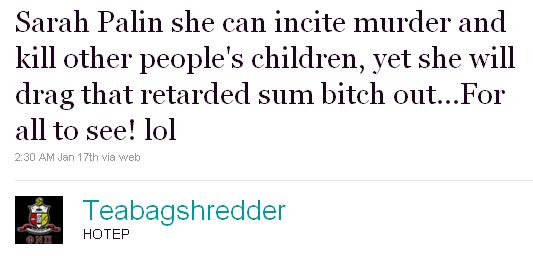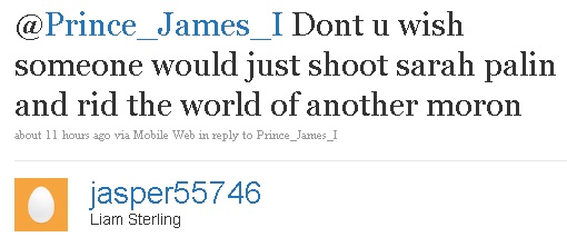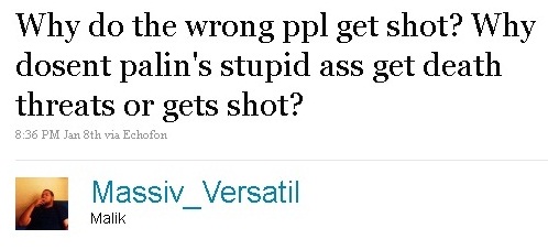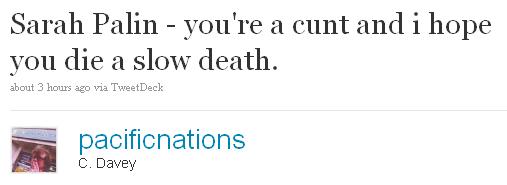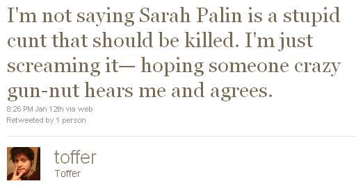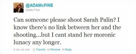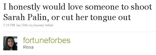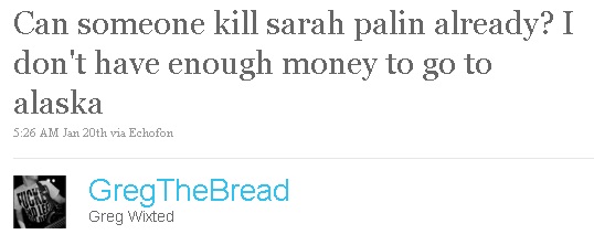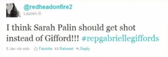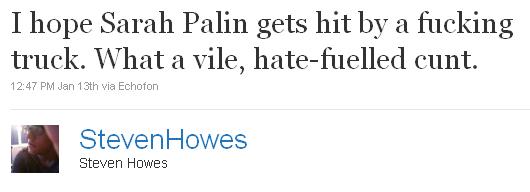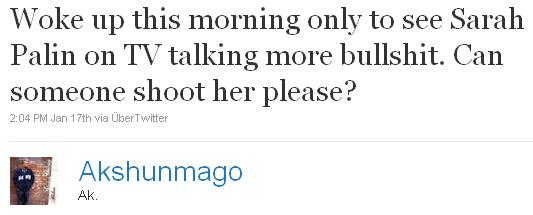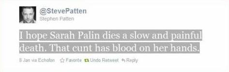 Twitter users wish death on Sarah Palin after the Tucson shooting, Jan 2011.