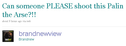 Here's a new search, turning up a variety of people who advocate violence, death and rape against Sarah Palin. Why? Who knows. None of them seem to use logic. But I agree with this comment that: "These tweets prove there's no shortage of 'Jared Loughners' out there."
