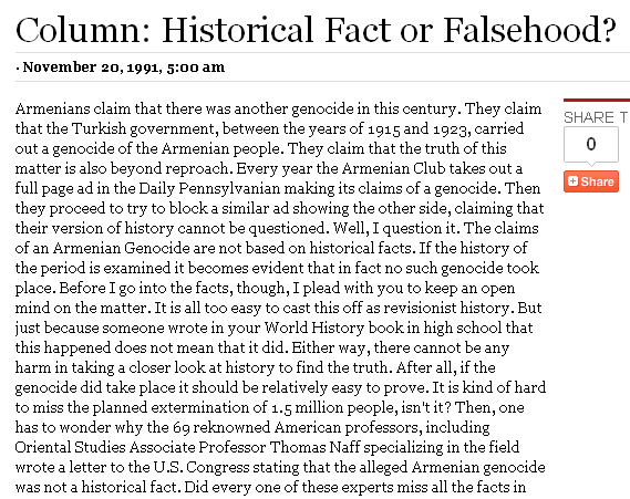 Historical Fact or Falsehood?, Cenk Uygur, The Daily Pennsylvanian, November 20, 1991.