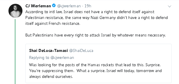 "Israel does not have a right to defend itself against Palestinian resistance ...