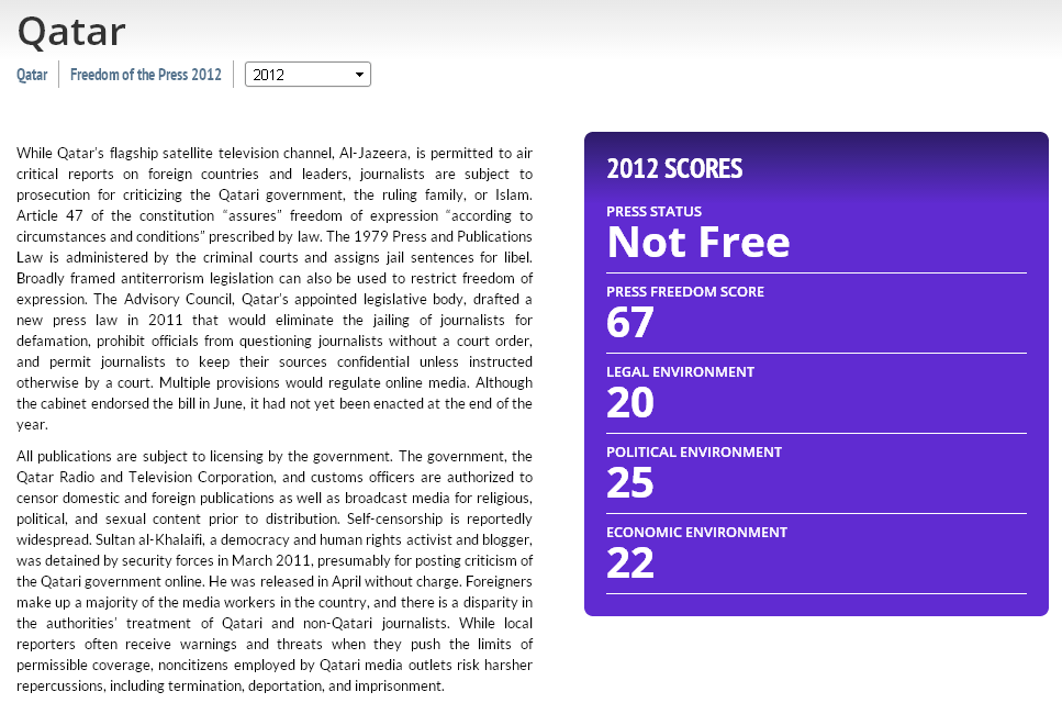 Freedom House 2012 report on press freedom in