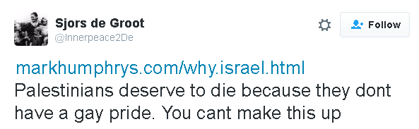 I was asked recently by a Palestinian-supporter on Twitter,
